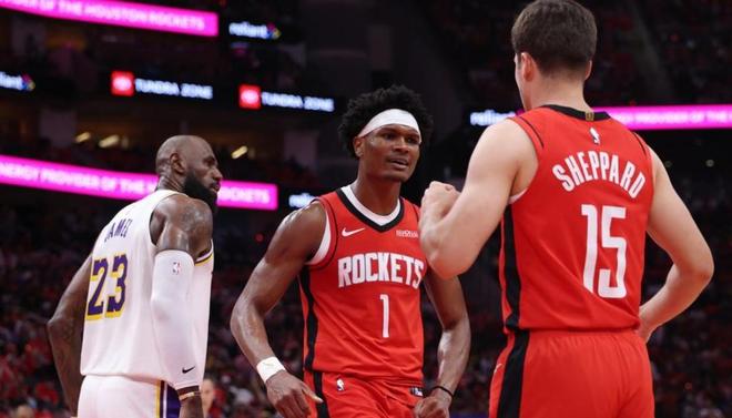 但比赛哨响,火箭便以破釜沉舟之势倾巢而出——防守端寸步不让,封堵所有突破路线,压缩投篮空间;内线卡位强硬果决,篮板拼抢奋不顾身;外线盯防密不透风,彻底搅乱湖人进攻起手节奏。
