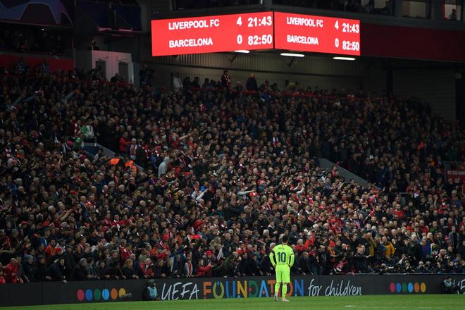 2019年5月7日,安菲尔德见证了欧冠历史上最戏剧性的逆转之一。首回合0-3落败的利物浦,次回合4-0击败拥有梅西、苏亚雷斯的巴萨。