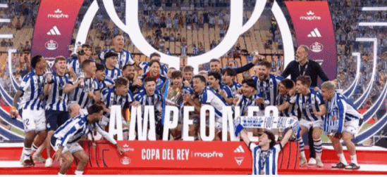 捧起奖杯!皇家社会全队欢庆夺冠!