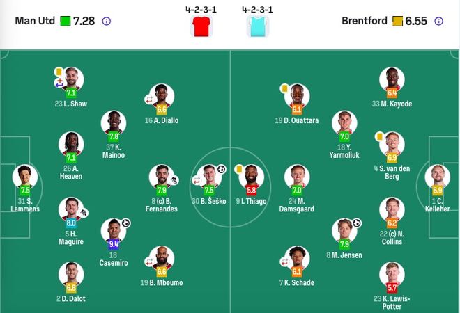 布伦特福德首发:1-凯莱赫、23-刘易斯·波特、22-科林斯、4-范登贝尔赫、33-卡约德、8-延森、19-亚尔莫柳克、7-沙德(73'11-尼尔森)、24-达姆斯高、19-瓦塔拉、9-伊戈尔·蒂亚戈