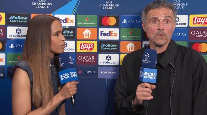 欧冠半决赛首回合,巴黎主场5-4战胜拜仁,巴黎主帅恩里克赛后接受了CBS体育的采访。